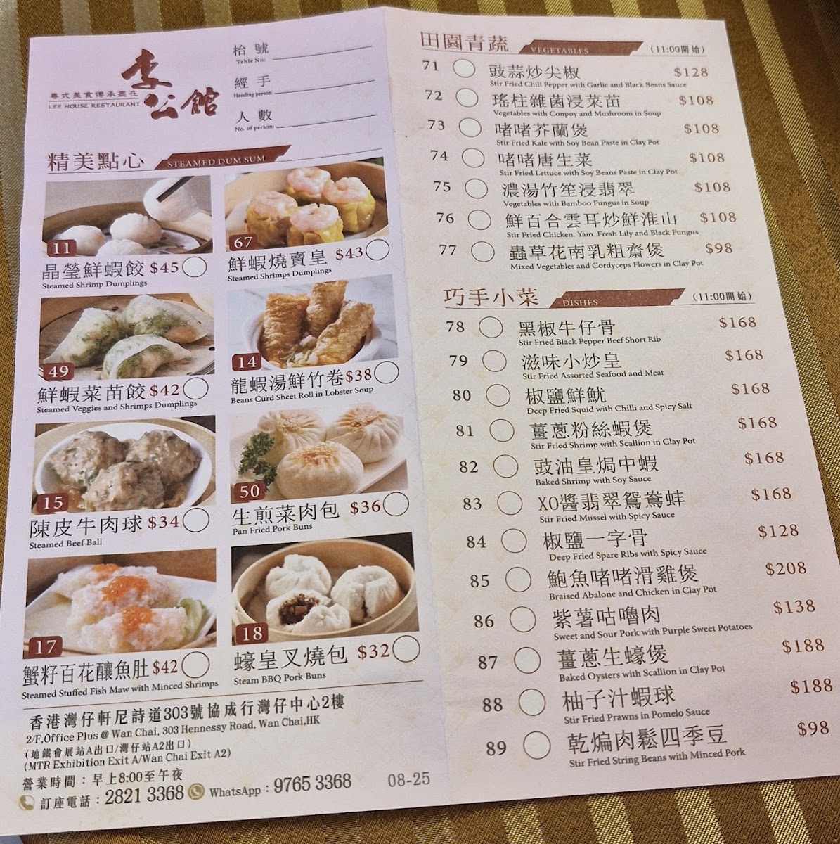 Welcome to Lee House Restaurant, a culinary gem nestled in the heart of Wan Chai, Hong Kong. Renowned for its delectable dim sum and expertly crafted Cantonese dishes, this venue promises a vibrant dining experience. The menu features highlights such as the mouthwatering sweet and sour pork served on ice, which perfectly balances crispness and flavor. Additionally, the traditional double-boiled soup and sautéed greens reflect the restaurant's commitment to using fresh, quality ingredients.